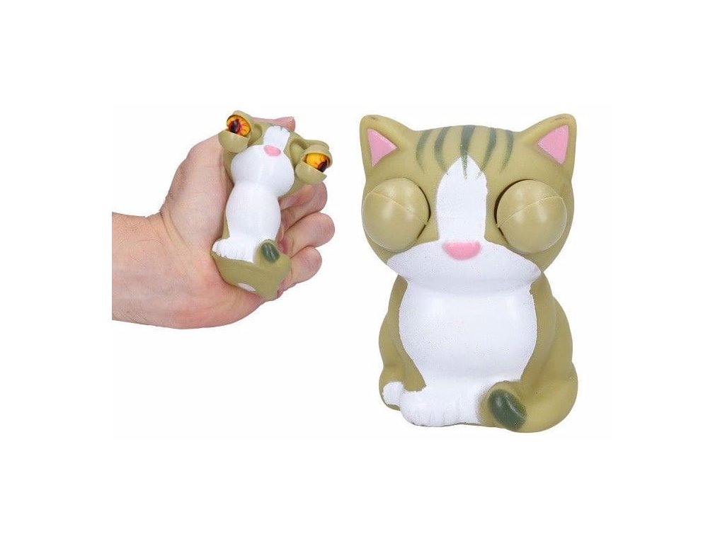 Mačkací hračka funguje prevence proti stresu. Hračka je z gumy a tak se dobře mačká. Při zmáčknutí vyletí zvířátku oči z důlků.