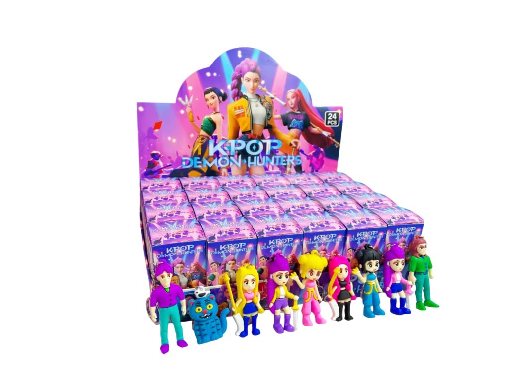 Sběratelské figurky z kolekce Demon Hunters z oblíbeného K-Popu v menším provedení. Krabička může mít různý design a neobsahuje klíčenku, pouze figurku a sběratelskou kartičku.