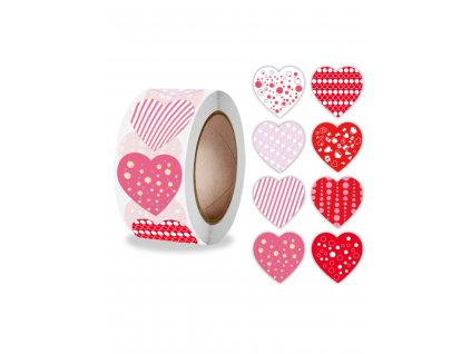 Samolepky na kotoučku - srdce červené hologram (500 ks)