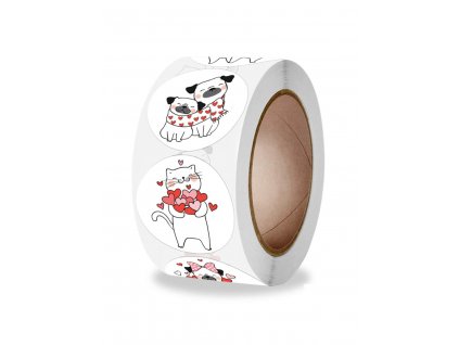 Samolepky na kotoučku - srdce Milující zvířátka (500 ks)